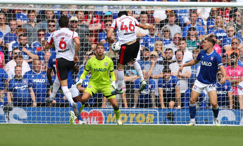 It’s time for peak Bobby straight after as he attempts to even up his genuine incompetence as Matusiwa tangles with Charles and it’s a clear six and two threes, but he gives it our way and books the Ipswich player. Fernandes hangs the free kick into the box and THB heads powerfully down but the goalkeeper gets there before Stephens.