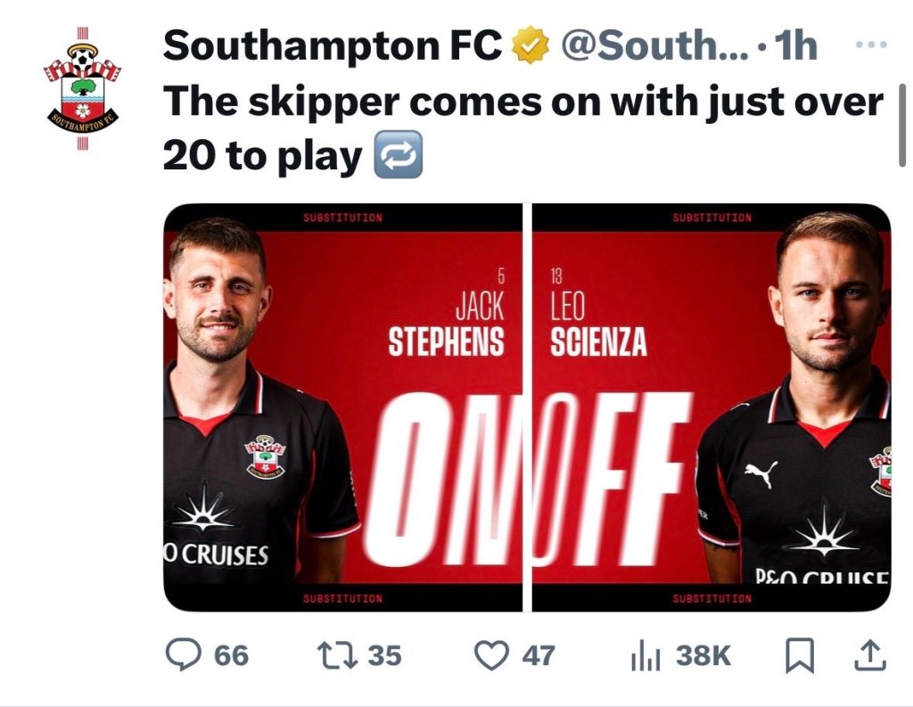 Tune in next week for the latest installment of the Season 25/26 shitshow when we take on Preston North End at St Mary’s.