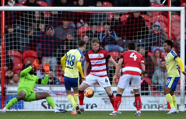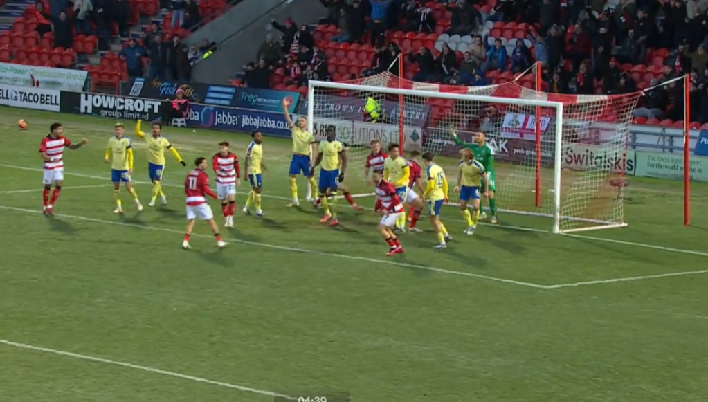 We’ve gone to shit now and Doncaster have worked out that just putting the ball in the mixer causes absoloute havoc. In come a cross from our right wing and it’s nodded down unchallenged and Okoronkwo slices wide from about 6 yards. OPut the yellow shirt order on ice.
