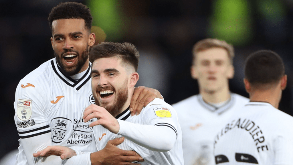 So, another trip to Wales, this time to the South-West and whenever Saints and Swansea are in same conversation, the name of Russell Martin inevitably comes up. Russell lead Swansea to two mid-table finishes before getting the Saints job and there are some familiar players to the Swansea fans in our squad at the moment, namely Flynn Downes, Ryan Manning and Nathan Wood. Swansea‘s best player of recent seasons was Matt Grimes but he has moved on to Coventry and one assumes he will be a Premier League footballer next season. Swansea replaced him with Ethan Galbraith this season and the Northern Irishman has made a decent fist of filling that particular hole. He will be missing this afternoon, though with a season ending injury, which is certainly to our advantage. One player who will be a threat to us today is Zan Vipotnik, who is the top scorer in the Championship this year, with the majority of his goals coming at the Liberty Stadium. He was on the scoresheet away from home last week, as Leicester committed their entire team forward for a free kick before passing straight to the nearest Swansea player, who went straight up the other end of the pitch in about five seconds and Vipotnik crashed the ball into the top corner.